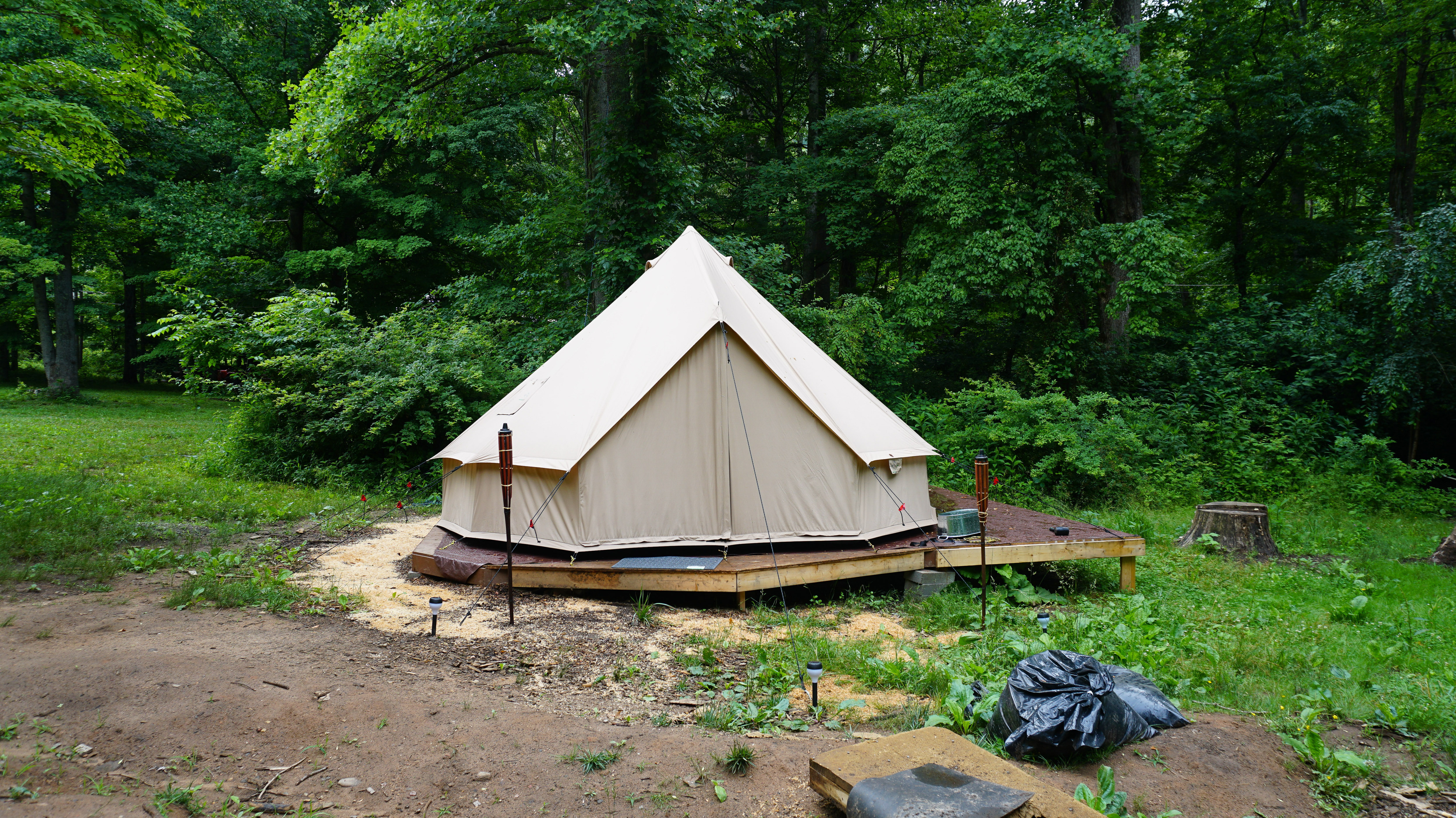 Gazebo, picnic table, rugs, lantern, gas barbecue